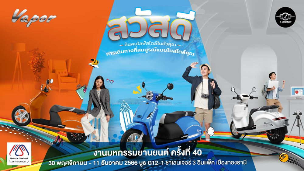 30 พ.ย. – 11 ธ.ค.นี้ เตรียมพบกับ I-Motor พร้อมเปิดตัวรุ่น Vapor CBS ครั้งแรกในไทย ในงาน Thailand International Motor Expo 2023 ครั้งที่ 40