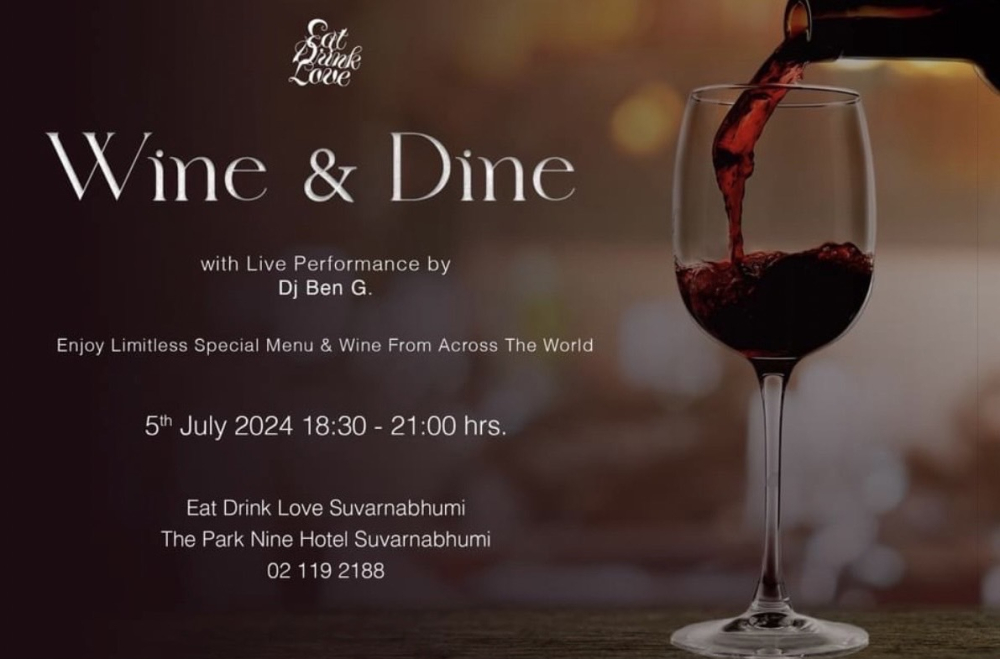 วันศุกร์ 5 กรกฎาคม ดื่มด่ำกับไวน์ชั้นดีจากทั่วโลก และบุฟเฟ่ต์ชั้นเลิศ พร้อมการแสดงสดโดยดีเจเบน จี! The PARK NINE Hotel (สุวรรณภูมิ)