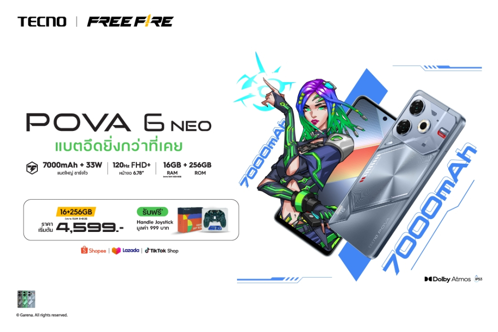 เทคโน เปิดตัว TECNO POVA 6 NEO สมาร์ตโฟนแบตอึดยิ่งกว่าที่เคย 7000mAh ในราคาโปรโมชั่นเริ่มต้นเพียง 4,599 บาท พร้อมรับฟรี! Premium Gift สุดพิเศษ มูลค่า 999 บาท
