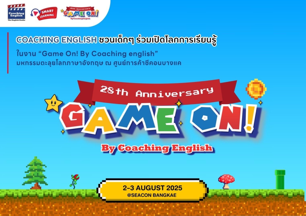 โดยงาน Game On by Coaching English จะจัดขึ้นในวันที่ 2 – 3 สิงหาคม 2568 (วันที่ 2 เวลา 10.00 – 20.00 น. และวันที่ 3 เวลา 10.00 – 18.00 น. ณ ลานชั้น 1 ซีคอนบางแค สำหรับผู้สนใจสามารถลงทะเบียนเพื่อเข้าร่วมงานฟรีได้ที่ https://forms.gle/CPEabxK6v8jSeetG6 หรือโทรสอบถามข้อมูลเพิ่มเติม 099 – 331-1177