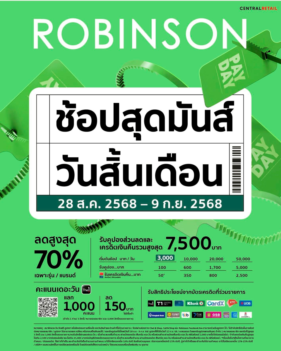 แคมเปญช้อปมันส์ วันสิ้นเดือน มีให้ฟินทุกสิ้นเดือน ตลอดปี ล่าสุดจัดตั้งแต่วันที่ 28 ส.ค. 68 – 9 ก.ย. 68 ที่ห้างโรบินสันทุกสาขา และทุกช่องทางการช้อป ขอบอกว่าโปรโมชันและสิทธิพิเศษเริ่ดจริง!