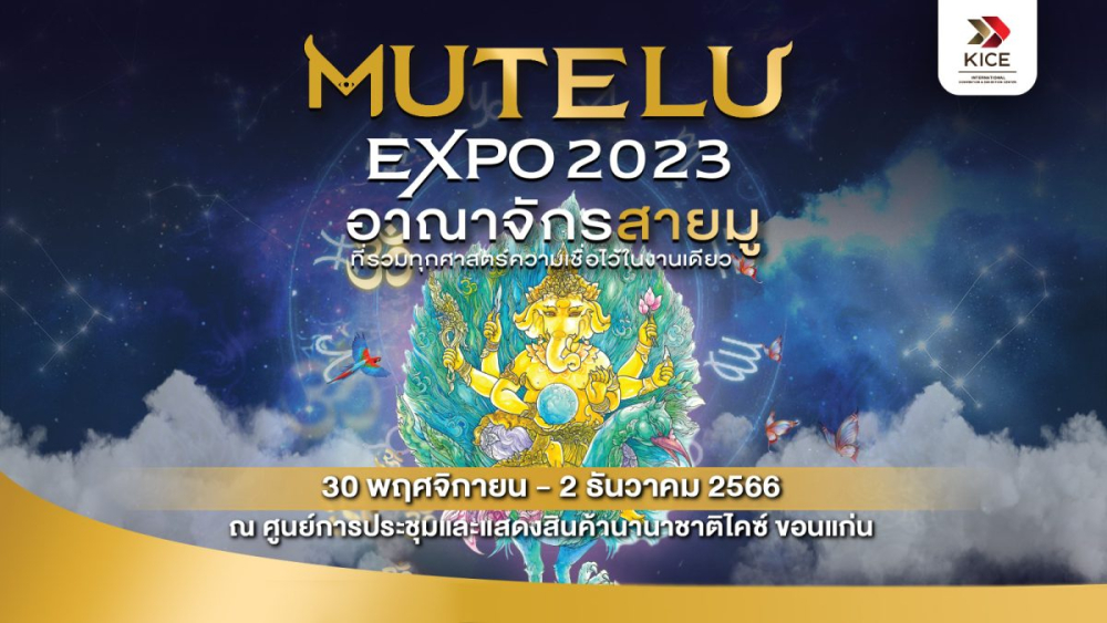 ศูนย์การประชุมและแสดงสินค้านานาชาติไคซ์ (KICE) จังหวัดขอนแก่น ร่วมผลักดัน “มูเตลู” สู่ซอฟต์พาวเวอร์ ส่งเสริมวัฒนธรรม ความเชื่อและความศรัทธา พร้อมขับเคลื่อนสู่ภาคเศรษฐกิจ ภาคการท่องเที่ยว การจัดประชุมและนิทรรศการ (MICE) ภายใต้งาน มูเตลู เอ็กซ์โป 2023 งานเดียวที่รวมทุกศาสตร์ความเชื่อไว้ในที่เดียว ครั้งแรกในภาคอีสาน พร้อมอัญเชิญ “พระศรีคเณศวร ปางโลกสนเทศ มหาคณปติ” ปางด้านการสื่อสารองค์แรกและองค์เดียวในโลก มาให้สายมูชาวอีสานได้สักการะ ณ ศูนย์การประชุมฯไคซ์ (KICE) พร้อมปักหมุดแลนด์มารค์กการจัดงานสายมูแห่งใหม่ของภาคอีสาน ระหว่างวันที่ 30 พฤศจิกายน – 2 ธันวาคม 2566 นี้