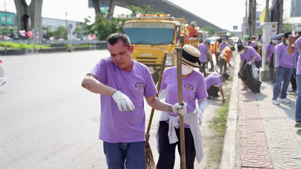 ชาวบางแก้ว รวมพลังจิตอาสา ทำความสะอาดถนนบางนา-ตราด ยกระดับเมืองน่าอยู่ ถวายเป็นพระราชกุศล