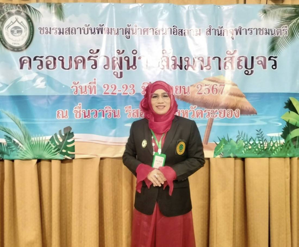 ดร.วันดี ยุโส้ ประธานโครงการฯกล่าวว่า ดิฉันมีความรู้สึกยินดี และขอชื่นชมกับพวกเราในครั้งนี้ ที่ร่วมกันจัดกิจกรรม “ ครอบครัวผู้นำ สัมมนาสัญจร” ณ ชื่นวาริน รีสอร์ท จังหวัดระยอง ในครั้งนี้ วัตถุประสงค์ของกิจกรรมงานสัมมนา มุ่งเน้นก่อให้เกิดความรักและความสามัคคี ถึงแม้จะมีอุปสรรคหรือข้อจำกัดอยู่บ้าง แต่ด้วยความตั้งใจของทุกท่านก็ผ่านพ้นมาได้ด้วยดี มีการเตรียมงานกันพอสมควร ตั้งแต่หลังเดือนรอมฎอน และมีการประชุมปรึกษาหารือเรื่อยมา จนออกมาเป็นรูปเป็นร่าง ดิฉันคิดว่าเป็นการเริ่มตันที่ดี และหวังว่าจะมีกิจกรรมกรรมในรูปแบบนี้อีก ในการรวมตัวของพวกเรา ในโอกาสต่อไป เพื่อกระชับความสัมพันธ์ระหว่างพวกเรา ให้แน่นแฟ้นยิ่งขึ้น ในฐานะที่ดิฉันพำนักอยู่ที่จังหวัดระยอง เป็นเจ้าของพื้นที่ ก็ขอต้อนรับทุกท่านด้วยไมตรีจิต หากมีสิ่งใดขาดตก บกพร่อง ก็ต้องขออภัยด้วย