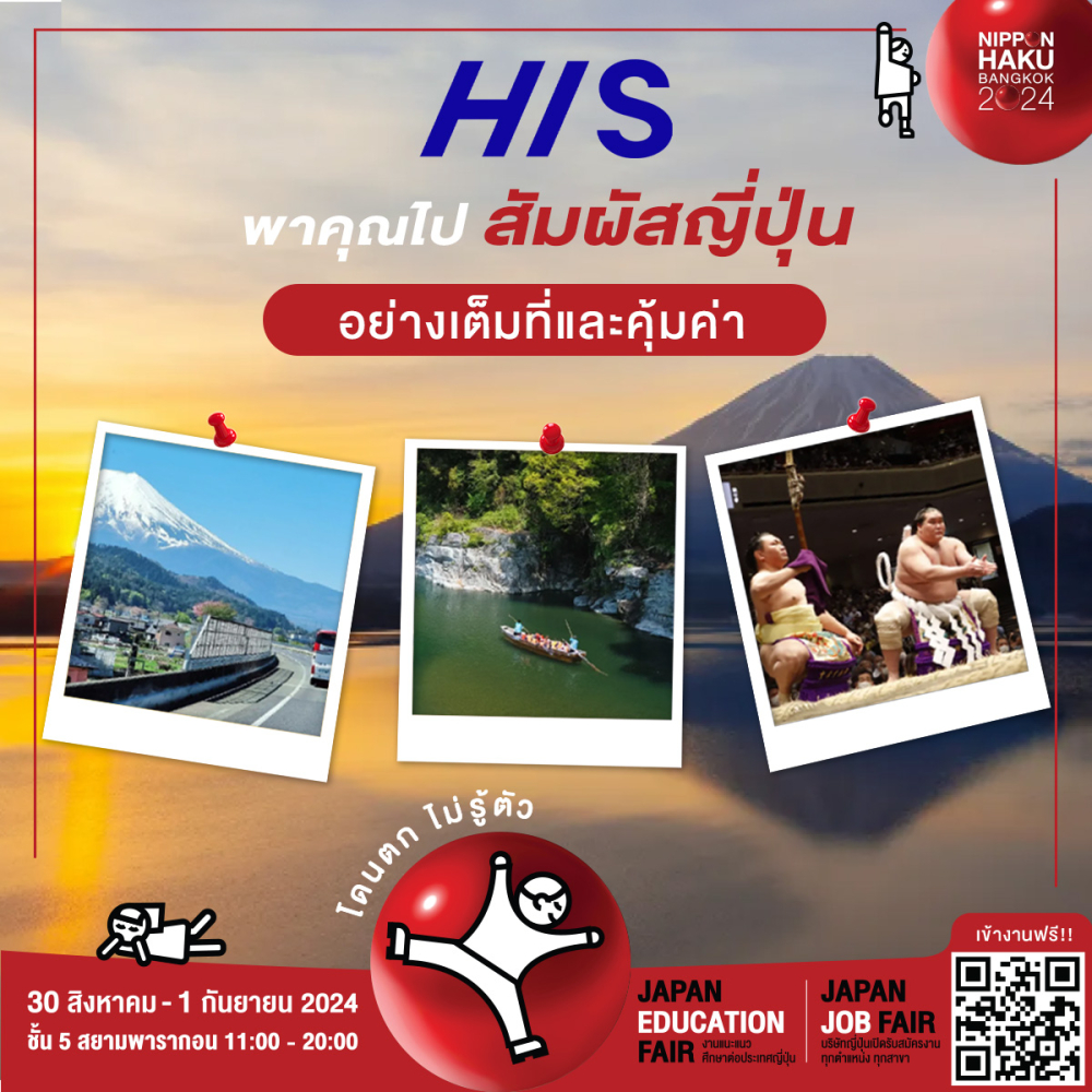 มหกรรมเพื่อคนรักญี่ปุ่นที่สุดในประเทศไทย “NIPPON HAKU BANGKOK 2024” ชวนคนรักการท่องเที่ยวญี่ปุ่นทุกคน มา #โดนตกไม่รู้ตัว กับข้อมูลท่องเที่ยวญี่ปุ่นทั้งเมืองหลักเมืองรอง แบบเจาะลึกจากหน่วยงานท่องเที่ยวจังหวัดและเมืองต่างๆ ที่บินตรงมาร่วมออกบูธกว่า 50 หน่วยงาน หรือใครเตรียมแพลนเที่ยวญี่ปุ่นอยู่ ห้ามพลาดมาช้อปสุดคุ้มกับโปรโมชั่นสุดปัง ทั้งจากสายการบิน และ บริษัททัวร์ อีกมากมาย พบดีลไฮไลท์สุดพิเศษภายในงาน อาทิ